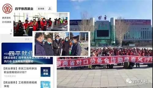 为加强铁西区农村富余劳动力转移就业,促进农村富余劳动力合理有序地向非农产业转移,增加农民收入,区人社局在市人社局的指导下,抢抓“吉浙两省”劳务输出对口合作机遇,协助四平市就业服务局在春节期间对我区劳动力开展有组织劳务输出工作。同时利用“四平铁西就业”公众号这一平台,面向全区发布了就业信息18条,提供不同的就业岗位5000多个。有力地促进了铁西区稳就业工作的开展。